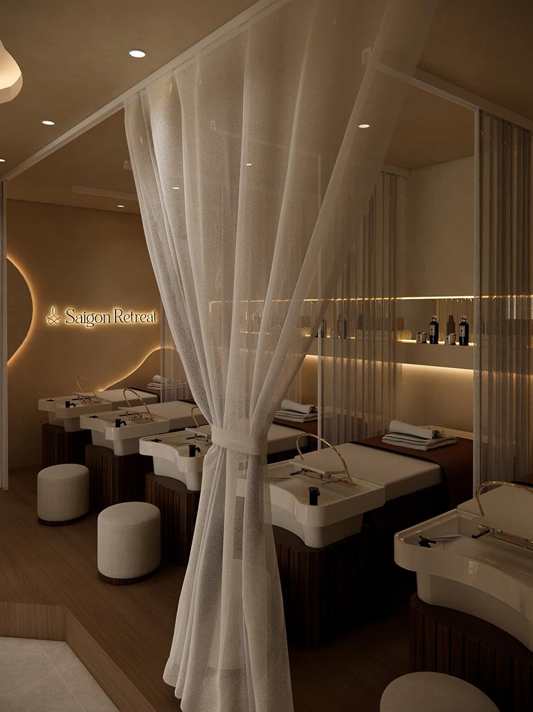 Designed with a warm, minimalist, and elegant aesthetic, the space blends soft lighting, therapeutic aromas, and soothing sounds to create an atmosphere of deep relaxation. Every moment at Saigon Retreat is crafted with care and mindfulness, reflecting a commitment to genuine comfort and emotional well-being.